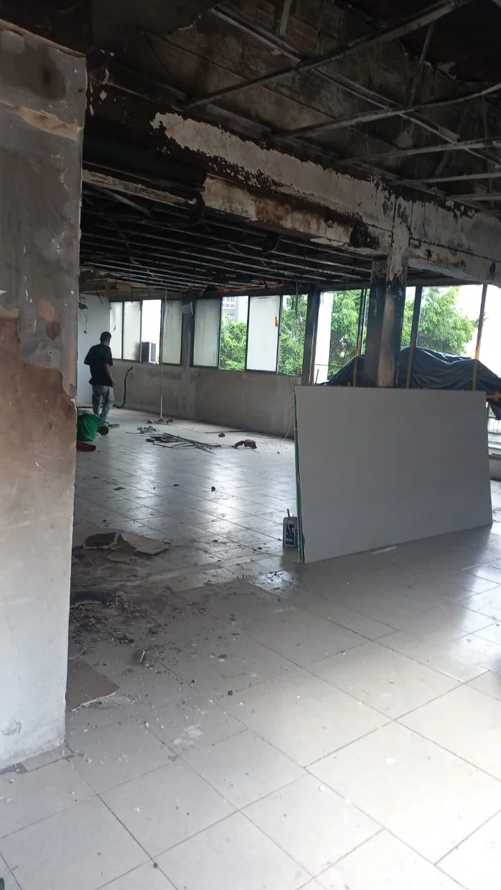 El cliente necesitaba transformar su salón principal en un espacio más moderno, luminoso y funcional. El ambiente original contaba con acabados envejecidos, paredes sin unidad visual y una distribución de elementos que fragmentaba la percepción del espacio. Alcance del proyecto: Preparación y corrección de superficies en paredes y techo Aplicación de pintura de alta cubrición en paleta neutra para ampliar visualmente el espacio Instalación de molduras decorativas y zócalos con perfilado fino Corrección de puntos eléctricos y reubicación de tomas para mayor funcionalidad Adecuación de iluminación central y puntos de luz complementarios Nivelación de piso y remate de bordes con acabado integrado Retiro de elementos estructurales menores para mejorar la circulación Detalles finales y limpieza integral del espacio Resultado: Un salón completamente renovado — con mayor amplitud visual, mejor aprovechamiento de la luz natural y una coherencia estética que eleva el conjunto del inmueble. La intervención demostró que una adecuación locativa bien ejecutada transforma por completo la percepción y el valor de un espacio.
